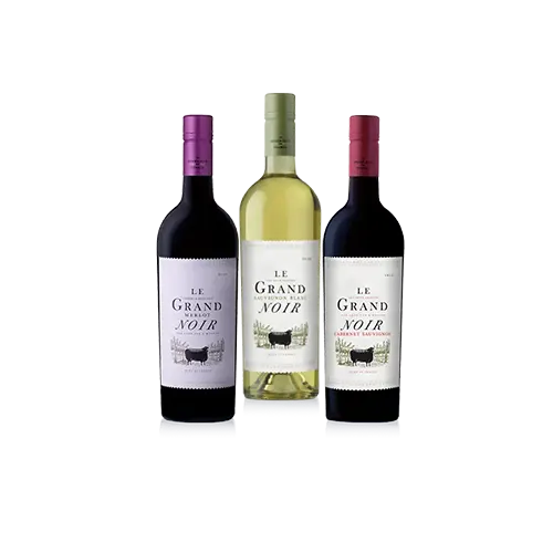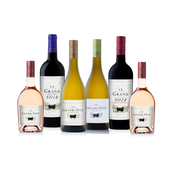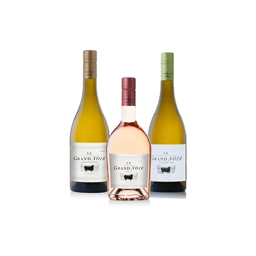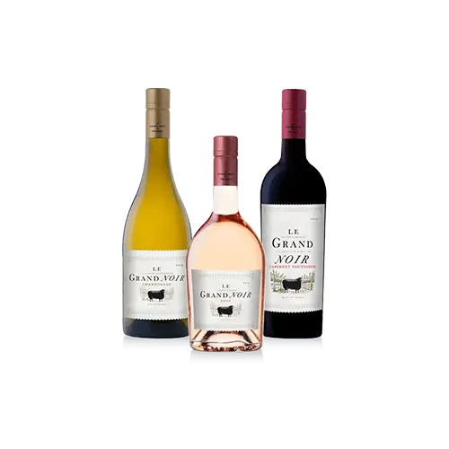 הוא מה שקורה כשסופר ומבקר יין עטור פרסים, יינן עולמי ומעצב תווית בעל הערכה בינלאומית נפגשים על כמה בקבוקי יין טובים. הם תהו כיצד הם עשויים ליצור יין שמפגיש בין הטעמים הקלאסיים והמורכבים, הידידותיים לאוכל, של צרפת עם הנגישות של העולם החדש. Le Grand Noir®, שהוצג לראשונה בארצות הברית בשנת 2002, זמין כעת ביותר מ-40 מדינות ברחבי העולם. כל היינות של Le Grand Noir® מגיעים מכרמים באזור מינרוואה, בלנגדוק-רוסיון שבדרום צרפת. הרומאים עשו באזור זה יין – יש אתר קבורה בן 2,000 שנה קרוב לאחד הכרמים שלנו – והענבים אוהבים את האקלים החם שטוף השמש ואת הבריזה הקרירה המגיעה מהים התיכון הסמוך ומההרים ה'שחורים'. למשל זן הויונייה המבושם להפליא המשגשג באקלים חם. מגיע כולו מגפנים שגודלו בסמוך לחומות מימי הביניים של הכפר אזיל. האדמה כאן מסומנת על ידי grés – אבן גיר מחימר שנראה שיש לה זיקה מיוחדת לזן הענבים הזה. האקלים החם סביב הכפרים, הרוחות וההרים מביאים טעמים טריים ומבושמים ליינות של Le Grand Noir®